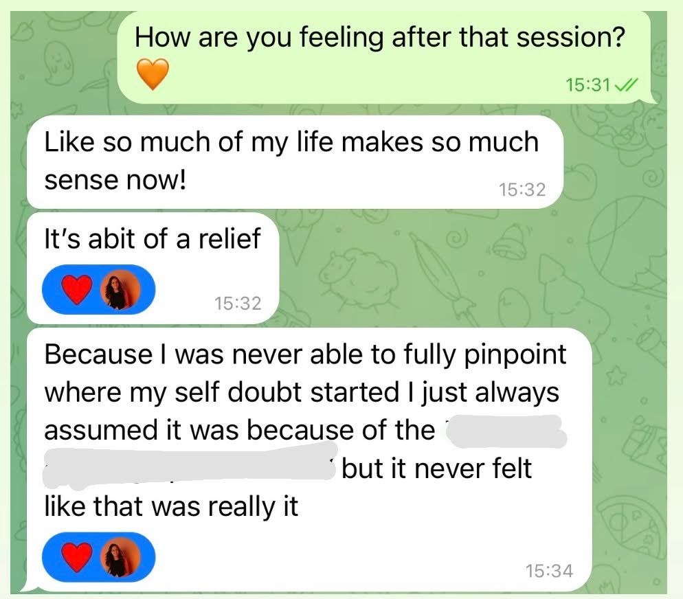 Real transformation happens when you have someone outside of your own brain to reflect back the things you don’t even realise you’re believing.Â